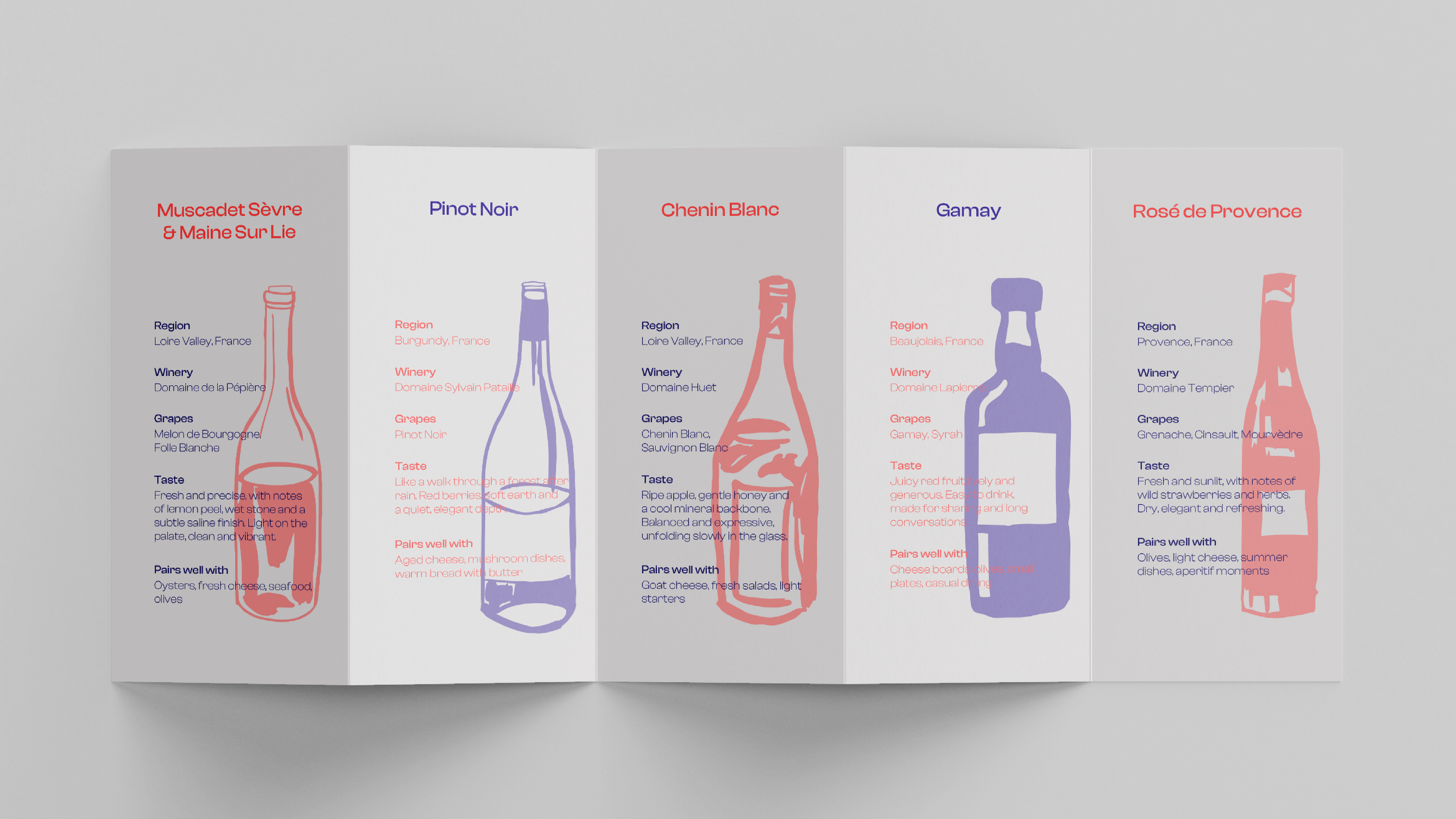 Das Branding basiert auf einer klaren Farbwelt, die zwischen frischer Eleganz und warmem Genuss balanciert, sowie einem illustrativen Stil, der an französische Plakatgrafik und skizzenhafte Tischszenen erinnert. Die Illustrationen schaffen eine persönliche Atmosphäre und vermitteln das Gefühl von Nähe, Gespräch und einem Abend, der sich langsam entfaltet.