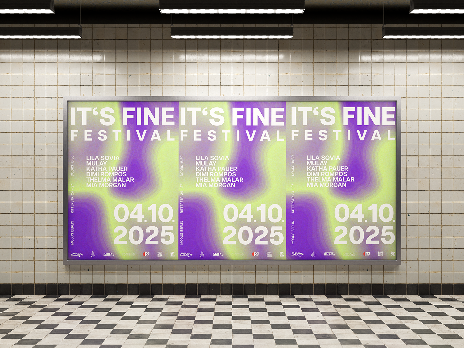 Im Rahmen eines ehrenamtlichen Projekts habe ich das Erscheinungsbild des IT’S FINE FESTIVALS neu gestaltet – einem Festival, das die FLINTA* Musikszene unterstützt und sichtbar macht. Wir überarbeiteten das Logo, entwickelten eine neue Farbwelt und setzten den Fokus auf ein visuelles Konzept, das energetisch, laut und gleichzeitig sensibel wirkt. Neben der visuellen Neuausrichtung gestalteten wir Artist*Vorstellungen, Plakate, Sticker, Social Media Videos und Motion Design Elemente.